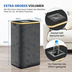 30 reviews for LURESHINE Flaschensammler 100L – Faltbar, wasserdicht und waschbar, mit Deckel und Tragegriff, ideal zum Sammeln von Leergut und Altglas, perfekt für die Küche oder Vorratsraum.